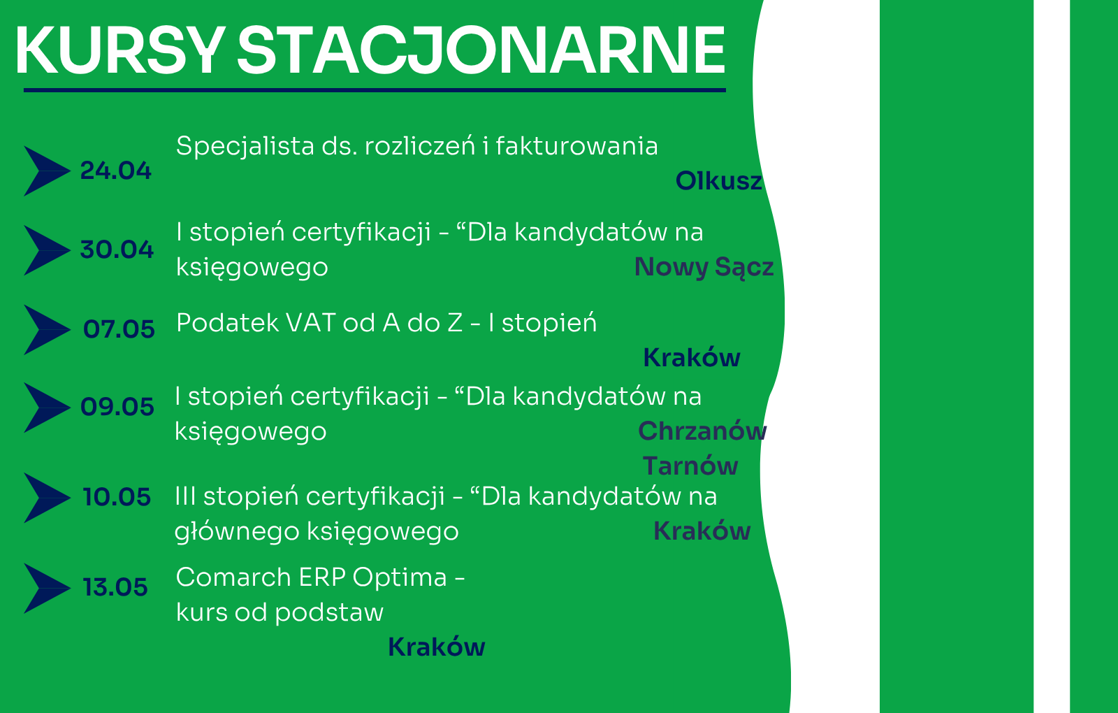W najbliższym czasie zapraszamy na kursy w formie stacjonarnej, realizowane w Oddziale Okręgowym w Krakowie oraz pozostałych Oddziałach Terenowych:
