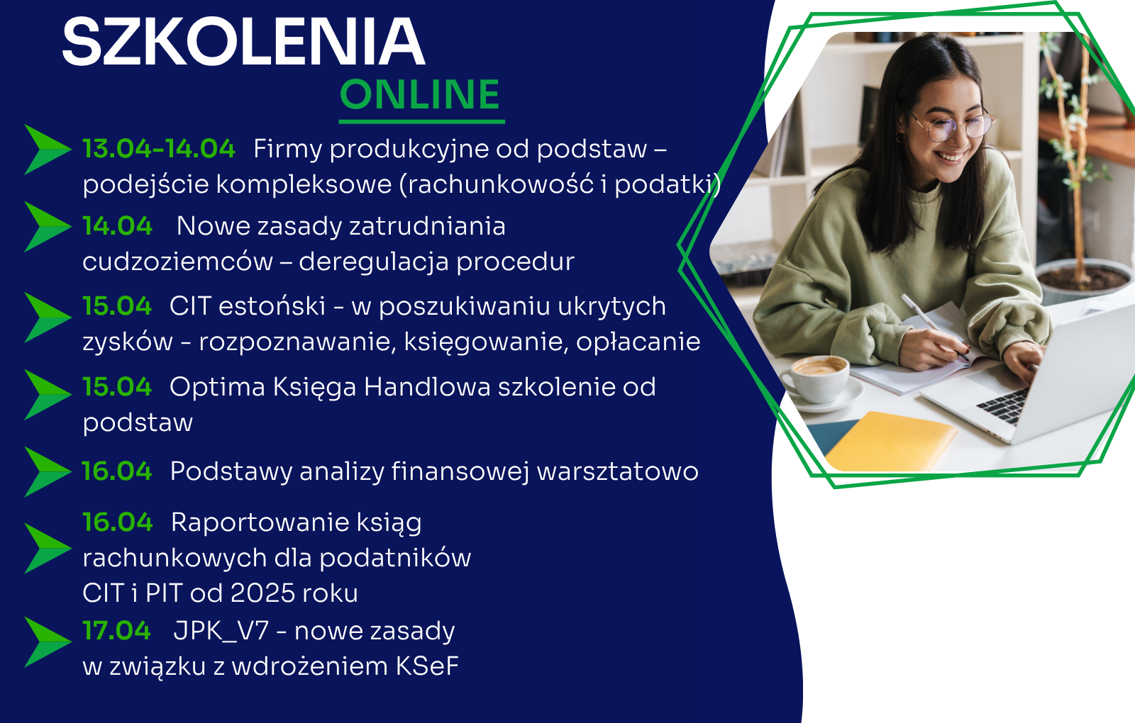W przyszłym tygodniu zapraszamy na następujące szkolenia online: